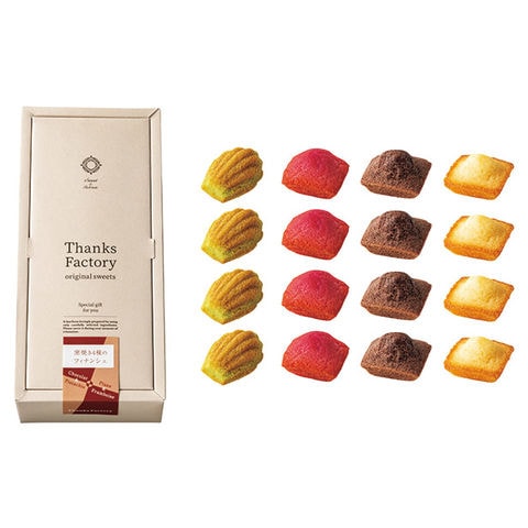 ■商品内容:フィナンシェ(ピスタチオ・フランボワーズ・チョコ・プレーン)×各4 化粧箱/30×13.5×6.5cm 原産国:日本