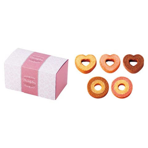 ■商品内容:ハートミニバウム(プレーン・ストロベリー・チョコ)×各1 ミニバウムクーヘン(キャラメル&ミルク・ストロベリー&ミルク)×各1 化粧箱/10×17×9cm 原産国:日本