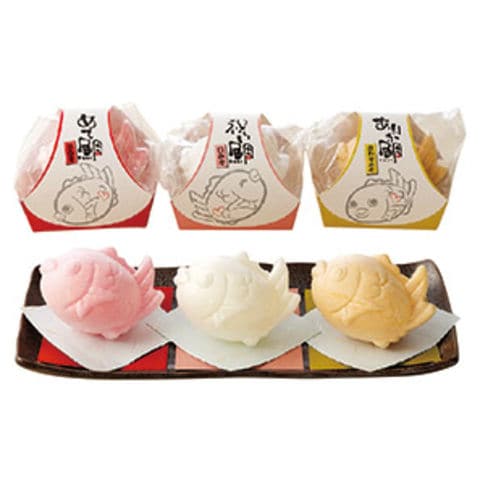 ■商品内容:めで鯛最中(赤みそ)・祝い鯛最中(白みそ)・ありが鯛最中(合わせみそ)×各1 化粧箱/22.5×10.5×8.5cm 原産国:日本