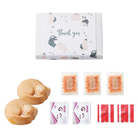 ■商品内容:福ねこもなか1組2枚×2・みそ汁(合わせ)8.9g・のり茶漬け5.8g×各2 かつおソフト削り1.5g×3 化粧箱/12×18×4.5cm 原産国:日本