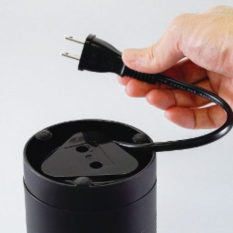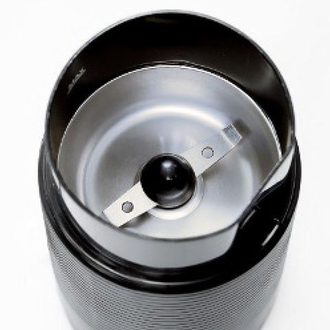■商品紹介:引く時間で粒度の調整ができるプロペラタイプのコーヒーミル。フタをきちんと閉めた状態でないと動作しない安全設計です。コードは製品底部にコンパクトに収納できます。
