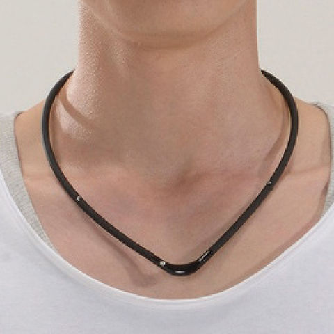 ■商品紹介:多くの人が悩んでいる肩こりを、磁気のチカラで改善。首周りに沿って配置された4つの強力な磁気が首・肩を包み、血行を改善。固くなった装着部位のこりを改善します。V字のトップにクリスタルを配置した、オシャレに着用できるデザインです。紐部分は肌に優しいシリコーン素材のため、汗や水に強くスポーツシーンにもオススメ。留め具も引っ張って外すだけの簡単着脱です。