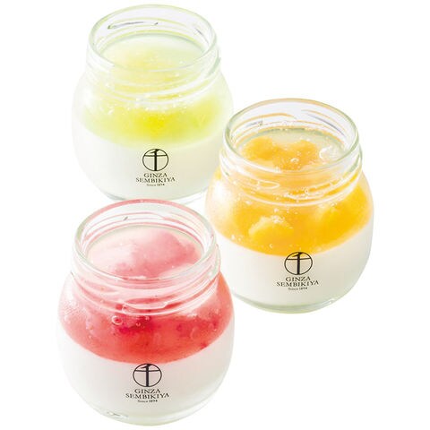 ■商品紹介:フレッシュな果物を使用した3種類のフルーツゼリーと口当たりなめらかな杏仁豆腐を瓶に閉じ込めました。ストロベリー・マンゴー・メロンの果肉をトッピングした、見た目も楽しい彩り華やかなフルーツ杏仁をお楽しみください。