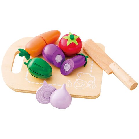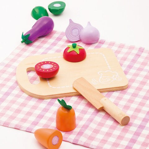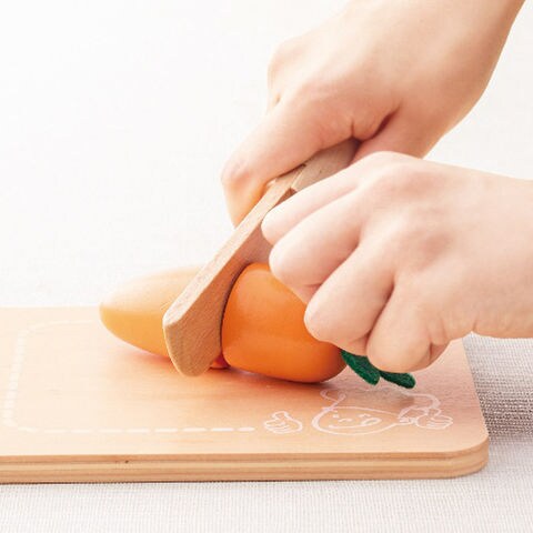 ■商品内容:にんじん・トマト・なす・ピーマン・たまねぎ各1個・MDF・約20×13.9×0.8cmまないた1個・ポプラベニヤ・長さ約14.5cmほうちょう1個・カエデ・[中国製]