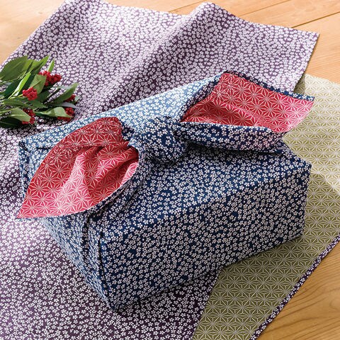 ■商品紹介:人気の小桜柄とシックな麻葉柄のリバーシブル風呂敷。ものを包むだけでなく、エコバッグやお部屋のインテリアとしても役立つ大判サイズです。