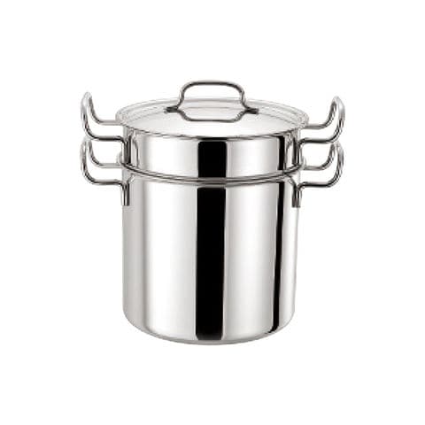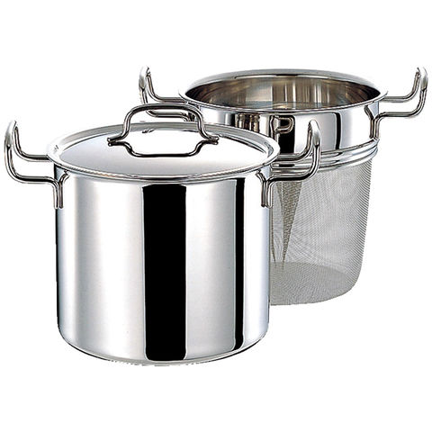 ■商品内容:直径21cm深さ20cmパスタポット(蓋付)1個・本体:全面7層構造(18-8ステンレス・アルミニウム・アルミニウム合金・有磁性ステンレス)・本体板厚:2.4mm・網製中子1個・18-8ステンレス・[日本製]