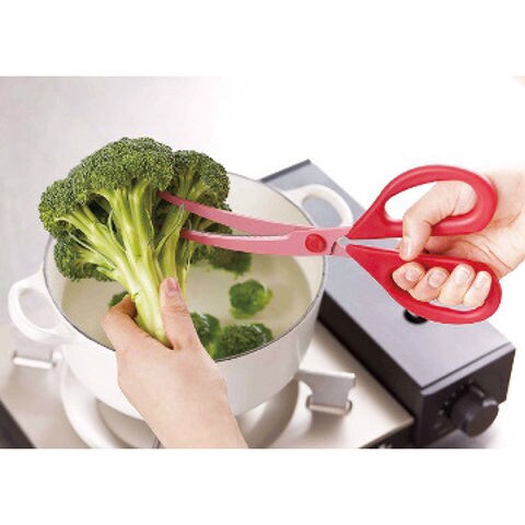 ■商品紹介:食材を逃さないカーブ形状がポイント。全体をカーブさせた形で、野菜や肉、加熱した食材を逃がさず切ることができます。分厚いお肉や、鍋の中の具材も切りやすく、手になじむデザイン性と使いやすさです。