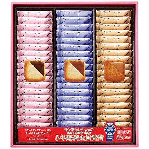 ■商品紹介:サクッとしたラングドシャクッキーでなめらかなチョコレートクリームをサンドしました。チョコレートクリームはスイート、ミルク、コーヒーの3種類。軽い口どけのクッキーとの優雅な出会いをお楽しみください。モンドセレクション3年連続金賞を受賞(2010年?2012年)