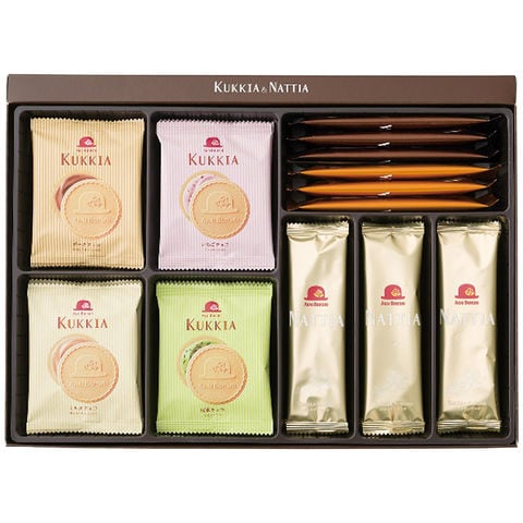 ■商品内容:クッキア(ミルク・ダーク・いちご・抹茶各5枚)・ナッティア(バニラアーモンド9枚・メープルココナッツ・キャラメルナッツ各3枚)