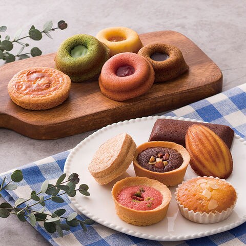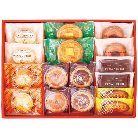 ■商品内容:ダックワーズプラリネ・マジパンケーキ・ガレット・フィナンシェショコラ・プチタルト(いちご・ショコラ)・リングフィナンシェいちご・チーズカップケーキ各2個
