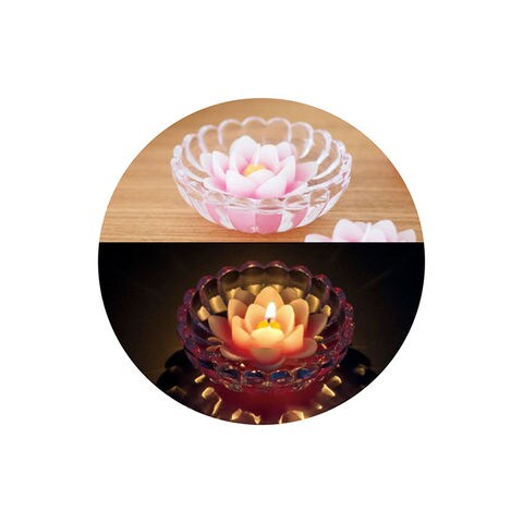 ■商品内容:直径5.8cm高さ2.8cm蓮ローソク20g×3個・長さ13.5cm蓮水香(白檀煙少香)30g×3箱・直径8.9cm高さ3cm燭台1個・ガラス・線香[日本製]・ローソク[ベトナム製]・燭台[中国製]