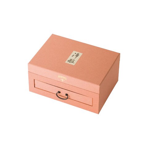 ■商品紹介:高級感あふれる「貼箱」、引き出しは便利な上下2段組みで使い終わった後も経本や数珠等、お仏壇まわりの小物の収納に重宝。