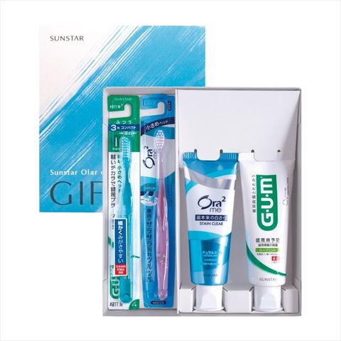 ■セット内容:GUMデンタルペーストスタンディングタイプ120g×1・Ora2meステインクリアペースト130g×1・GUMデンタルハブラシ×1・Ora2meハブラシミラクルキャッチ×1
