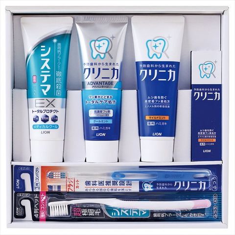 ■セット内容:システマEXハミガキ メディカルクールミント130g×1、システマEXハミガキ エクストラハーブミント130g×1、クリニカ ミガキ マイルドミント タテ型130g×1、クリニカ ミガキ マイルドミント 30g×1、システマハブラシ コンパクト4列ふつう×1