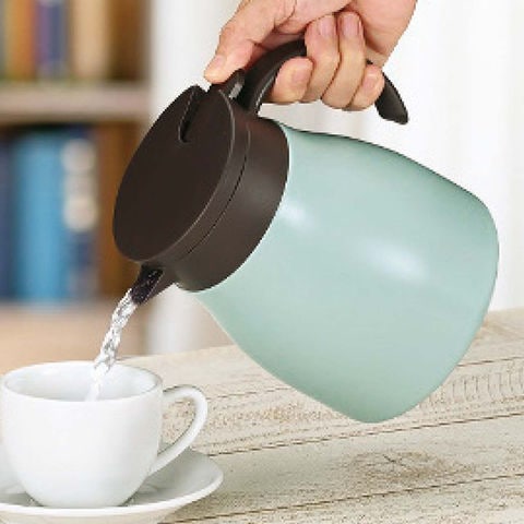 ■商品紹介:真空二重構造で保温・保冷ができるポットです。淹れたい時にワンプッシュ。簡単操作でリラックスタイムに。