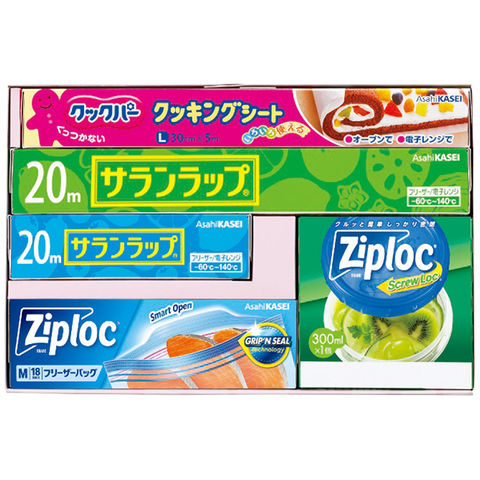 ■商品内容:サランラップ(30cm×20m)・サランラップ(15cm×20m)各1本・ジップロックフリーザーバッグM(18枚入)・ジップロックスクリューロック(300ml×1個)・クックパークッキングシートL(30cm×5m)各1箱・[日本製]・ジップロック[タイ製]・ジップロックスクリューロック[韓国製]