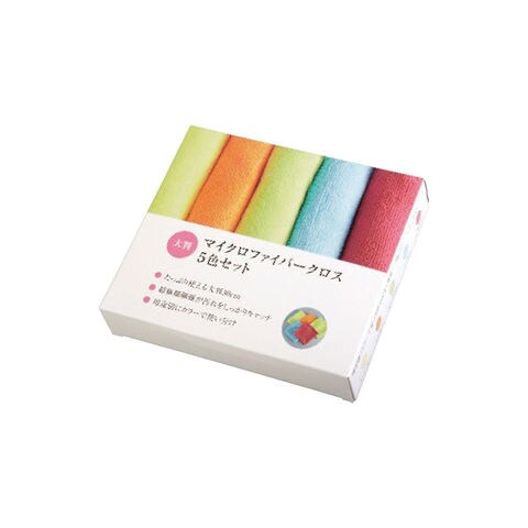 ■商品紹介:マイクロファイバーの超極細繊維が汚れをしっかり落とします。使い分けに便利な5色セット。