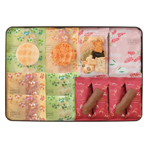 ■商品内容:ぐるめ探訪冬小路×7、姫てまり直火炊き醤油×6、姫てまりやき塩×5、ショコラおかきミルクチョコ×12