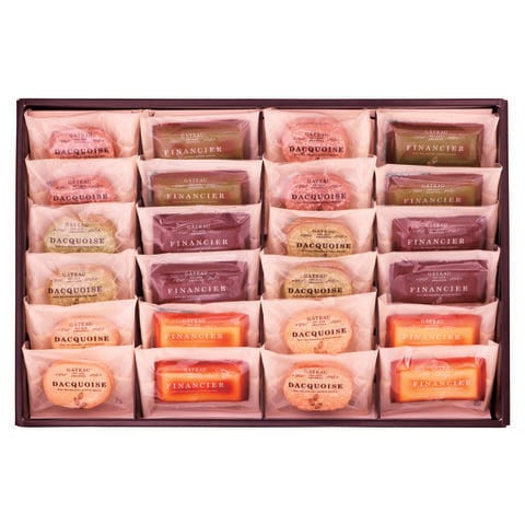 ■商品内容:ダックワーズ×12(プラリネ・ショコラ・抹茶×各4)、フィナンシェ×12(プレーン・ショコラ・抹茶×各4)