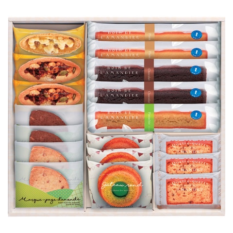 ■商品内容:パウンドケーキ フルーツ×3、アーモンドの樹(プレーン・ショコラ)・タルト・アムール キャラメルナッツショコラ・アーモンドの栞(プレーン・ショコラ)・ガトー・ロン抹茶×各2、アーモンドの樹 ピスタチオ・タルト・アムール クランブルアップル・ガトーロン カフェモカ×各1
