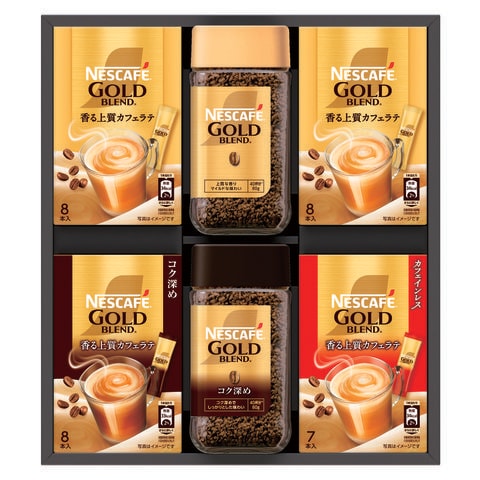 ■商品内容:ネスカフェ ゴールドブレンド80g・コク深め80g×各1、ネスカフェ ゴールドブレンド スティック(7g×8P)×3(コーヒー×2・コク深め×1)、ネスカフェ ゴールドブレンド カフェインレス スティックコーヒー(7g×7P)×1