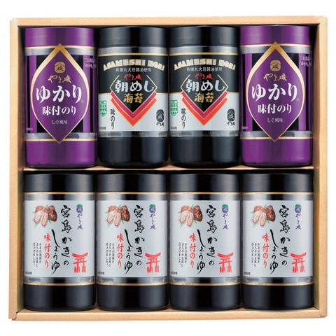 ■商品内容:味付のり(8切26枚)×2本、ゆかり味付のり(しそ風味)(8切26枚)×2本、かき醤油味付のり(8切26枚)×4本