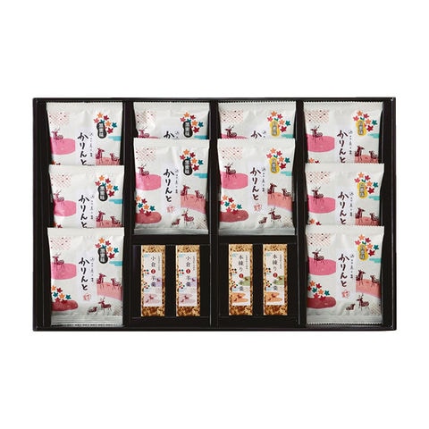 ■商品紹介内容/黒蜜かりんとう:10g×5・白蜜かりんとう:10g×5・羊羹(小倉):50g×2・羊羹(本練):50g×2《乳・小麦》