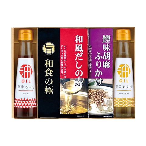 ■商品紹介内容/香味あぶら:90g×1・和風だしの素:4g×3・鰹味胡麻ふりかけ:4g×2・白金あぶら:90g×1《乳・小麦》