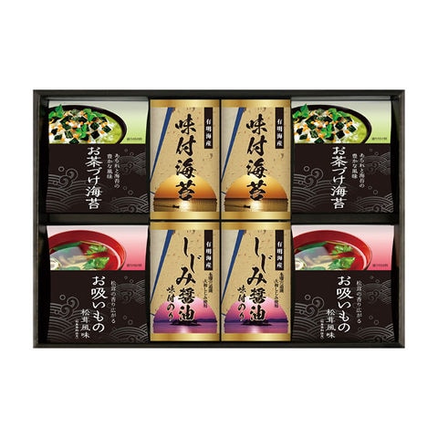 ■商品紹介内容/永谷園お茶づけ海苔:4.7g×5袋×2・永谷園お吸いもの松茸風味:2.3g×6袋×2・有明海産味付海苔:10切20枚×2・しじみ醤油味付海苔:10切20枚×2《小麦》