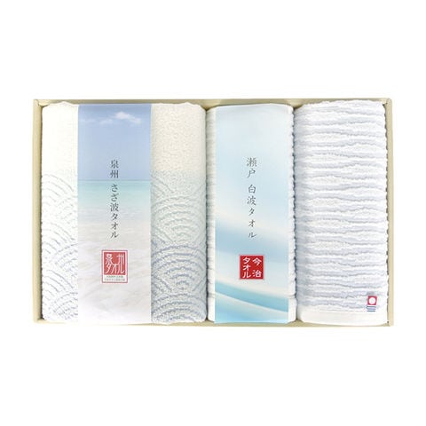 ■商品紹介内容/泉州産バスタオル:62×115㎝×1・今治産フェイスタオル:33×75㎝×1・今治産ウォッシュタオル:33×35㎝×1