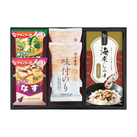 ■商品紹介内容/大森屋味付のり:8切5枚×2・アマノフーズいつものおみそ汁(なす)×1・アマノフーズいつものおみそ汁(ほうれん草)×1・海老しらすふりかけ:3g×3袋×1《乳・小麦・えび》