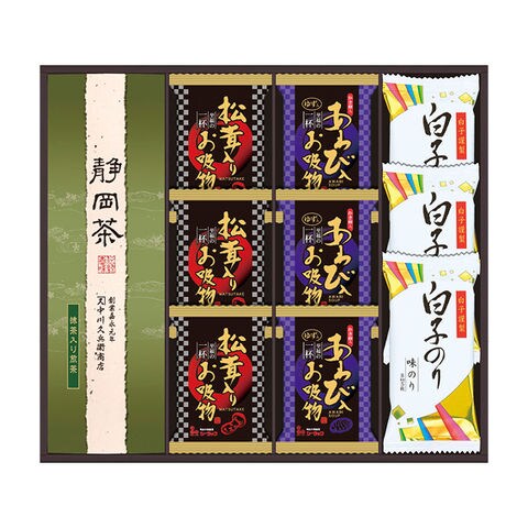 ■商品紹介内容/抹茶入り煎茶:80g×1・あわび入お吸い物:4g×3・松茸入りお吸い物:4.2g×3・白子のり:8切5枚×3《卵・乳・小麦・えび》