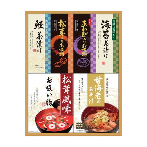 ■商品紹介内容/あわび入お吸い物:4g×1・松茸入りお吸い物:4.2g×1・北海道産鮭茶漬け:4g×3・丸美屋のり茶漬け:6g×2・甘海老みそ汁:7.5g×3袋×1・永谷園松茸風味お吸い物:2.3g×4袋×1《卵・乳・小麦・えび》