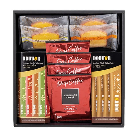 ■商品紹介内容/エクセルシオールカフェドリップコーヒー(モカブレンド)×4・ドトールインスタントスティック抹茶オレ×2・ドトールインスタントスティックカフェラテ×2・ドトールインスタントスティックロイヤルミルクティー×2・ドトールインスタントスティックカフェオレ×4・カットケーキ(レモン)×2・カットケーキ(オレンジ)×2《卵・乳・小麦》