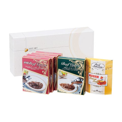 ■商品紹介内容/ビーフカレーレギュラー(中辛):150g×1・ビーフカレー欧風(中辛):150g×4・淡路島産フルーツたまねぎのスープ:6.2g×4《小麦》