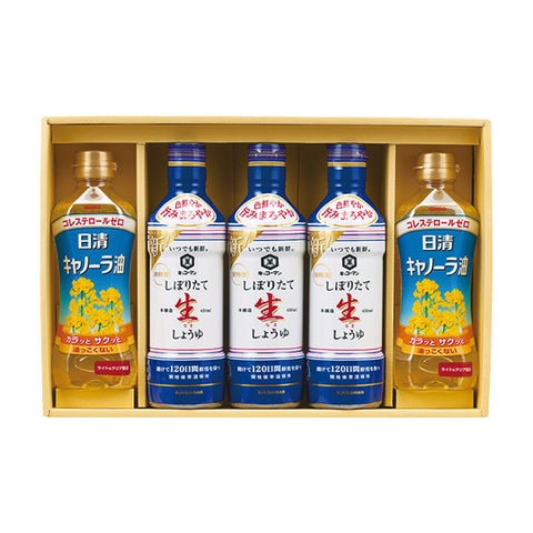 ■商品紹介内容/キッコーマンいつでも新鮮しぼりたて生しょうゆ:450ml×3・日清キャノーラ油:350g×2《小麦》