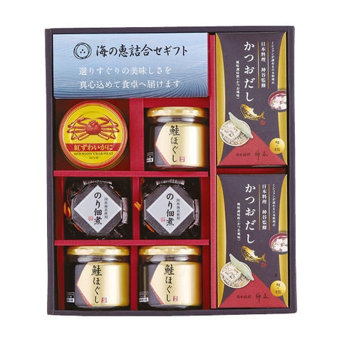 ■商品紹介内容/鮭ほぐし:50g×3・のり佃煮:80g×2・かつおだし:4g×8袋×2・紅ずわいがにほぐし身:55g×1《乳・小麦・かに》