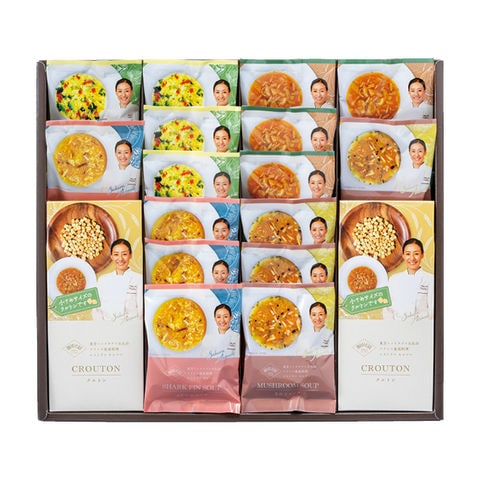 ■商品紹介内容/オニオンスープ×4・野菜たまごスープ×4・きのこスープ×4・ふかひれスープ×4・クルトン:5g×2袋×2《卵・乳・小麦》