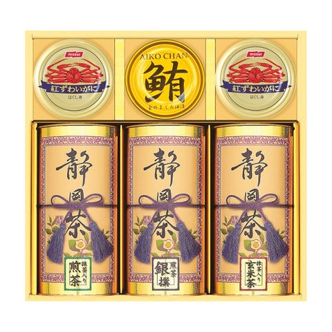 ■商品紹介内容/煎茶(銀撰):80g×1・抹茶入り煎茶:80g×1・抹茶入り玄米茶:80g×1・紅ずわいがにほぐし身:55g×2・鮪油漬フレーク:70g×1《かに》