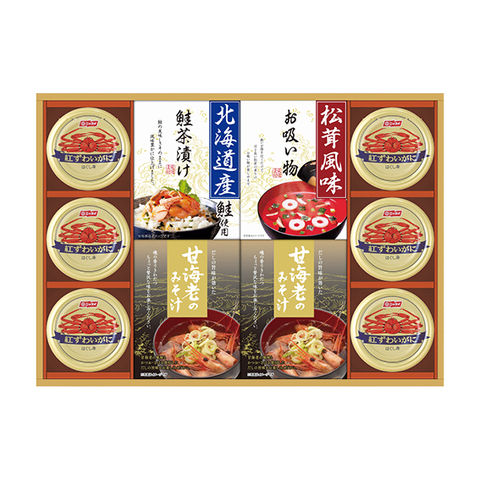 ■商品紹介内容/甘海老みそ汁:7.5g×3袋×2・北海道産鮭茶漬け:4g×3袋×1・永谷園松茸風味お吸い物:2.3g×4袋×1・紅ずわいがにほぐし身:55g×6《乳・小麦・えび・かに》