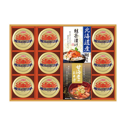 ■商品紹介内容/甘海老みそ汁:7.5g×3袋×1・北海道産鮭茶漬け:4g×3袋×1・紅ずわいがにほぐし身:55g×9《乳・小麦・えび・かに》