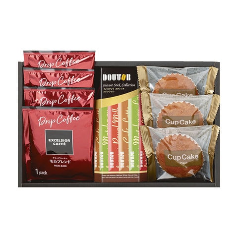 ■商品紹介内容/エクセルシオールカフェドリップコーヒー(モカブレンド)×4・ドトールインスタントスティック抹茶オレ×2・ドトールインスタントスティックカフェラテ×2・ドトールインスタントスティックロイヤルミルクティー×2・カップケーキ(プレーン)×3《卵・乳・小麦》
