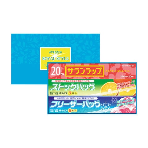 ■商品紹介内容/サランラップ:22㎝×20m×1・ストックバッグM:7枚×1・フリーザーバッグM:5枚×1