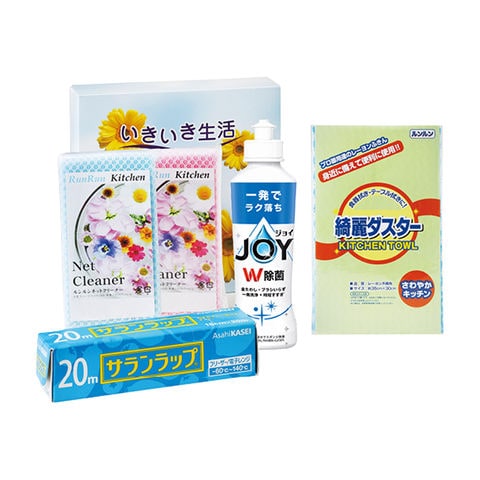 ■商品紹介内容/P&G除菌JOYコンパクト[日本製]:170?×1・サランラップ[日本製]:15㎝×20m×1・ルンルンネットクリーナー2P[ベトナム製]:15×8×2㎝×1・綺麗ダスター(ブルー)[中国製]:35×30㎝×1