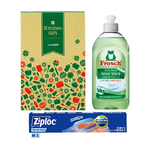 ■商品紹介内容/ジップロック フリーザーバッグ[タイ製]:M5枚入×1・フロッシュ 食器用洗剤[ドイツ製]:300?×1