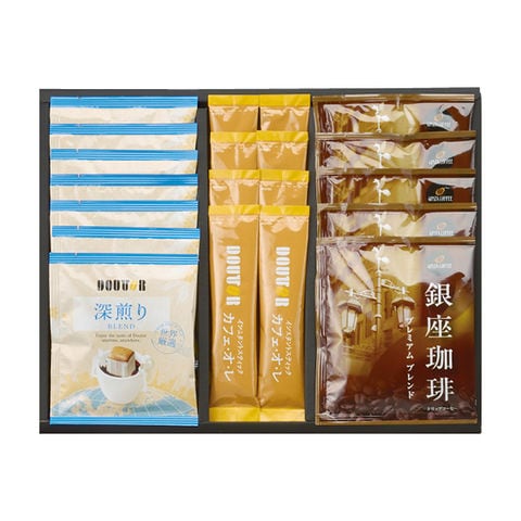 ■商品紹介内容/ドトールドリップコーヒー深煎りブレンド:7g×7・銀座珈琲プレミアムブレンド:10g×5・ドトールカフェ・オ・レ:9.5g×8《乳》