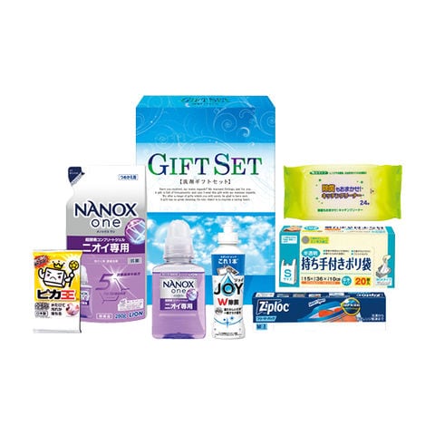 ■商品紹介内容/ライオンナノックスone[日本製]:380g×1・ライオンナノックスone詰め替え用[日本製]:280g×1・P&G除菌ジョイコンパクト[日本製]:170ml×1・持ち手付ポリ袋S:20枚×1・ジップロックフリーザーバッグM[タイ製]:3枚×1・除菌キッチンクリーナー[日本製]:24枚×1・ピカ王ミニ[日本製]×1