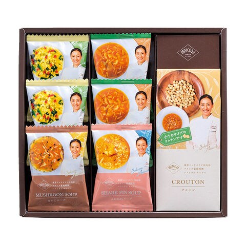 ■商品紹介内容/オニオンスープ×2・野菜たまごスープ×2・きのこスープ×1・ふかひれスープ×1・クルトン:5g×2袋×1《卵・乳・小麦》