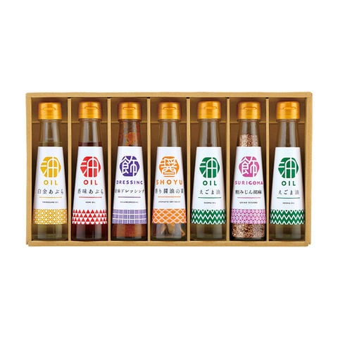 ■商品紹介内容/白金あぶら:90g×1・香味あぶら:90g×1・胡麻ドレッシング:100?×1・香り醤油の素:4.5g×1・粗みじん胡麻:45g×1・えごま油:90g×2《小麦》
