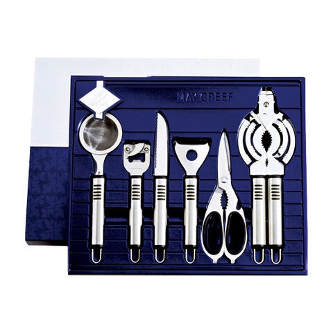 ■商品紹介内容/キッチン鋏×1・皮引き×1・栓抜き&缶切り×1・ユーティリティーナイフ×1・ジャーオープナー×1・茶こし×1